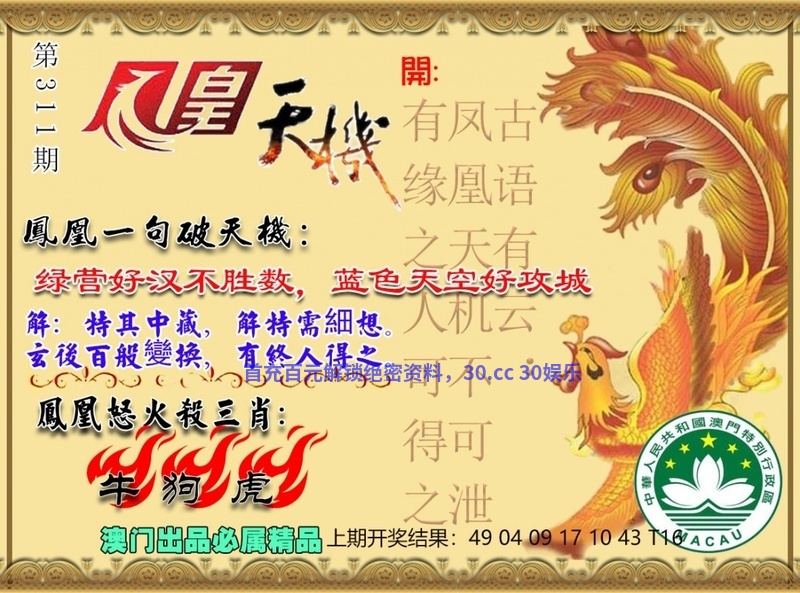 306期:绝杀三肖🍀【鸡牛虎】🍀开:牛17